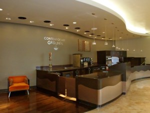 Upon entering the lobby, you are greeted by the feeling of a very stream-lined, city-like feel. Marble floors and walls are cream-colored and sparsely decorated. In short a very “contemporary” feel….and I have to add a strange musty smell. I only mention this because I have been here a few times and have always noticed it. Strange.