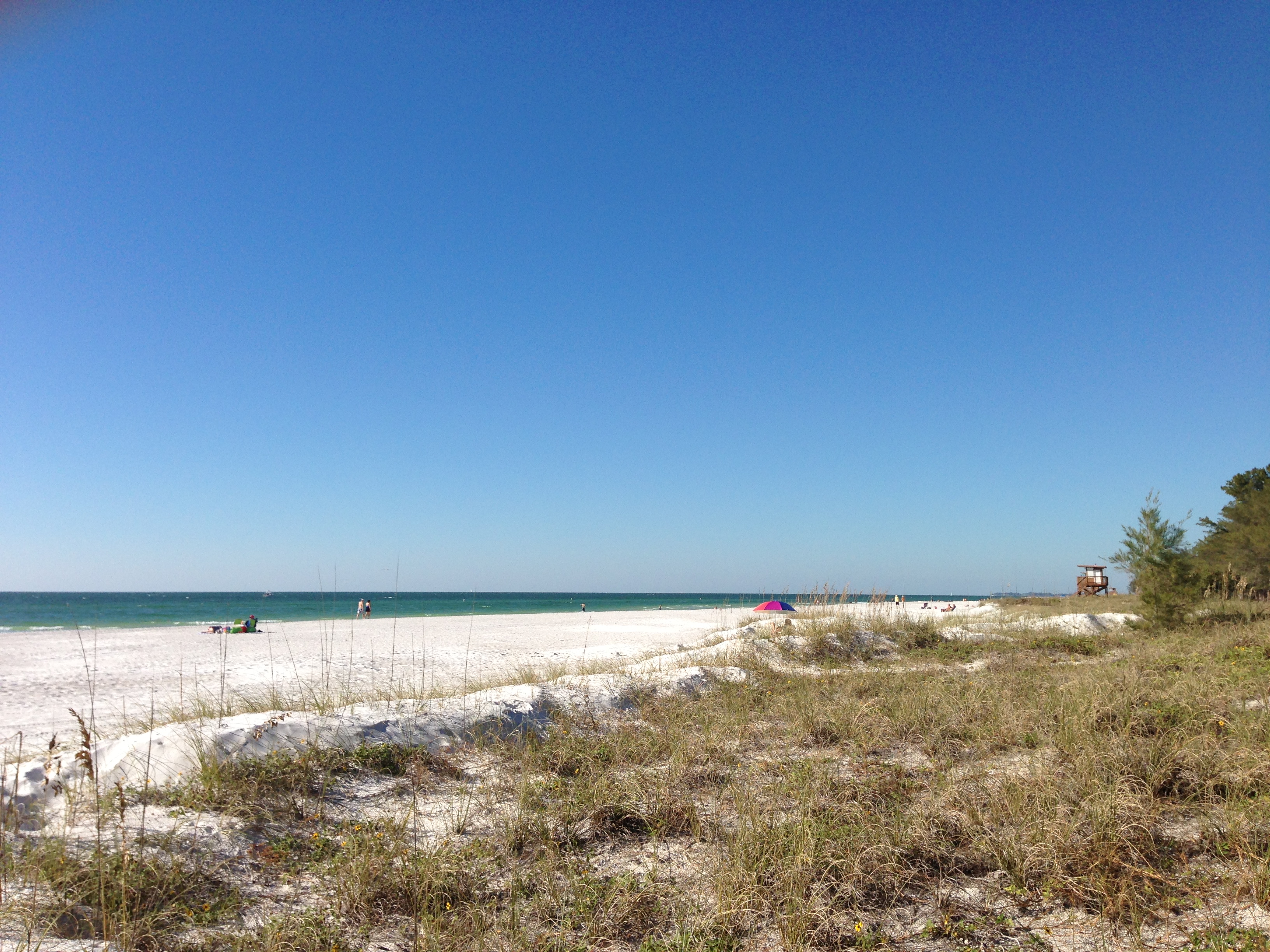 It is the longest stretch of beach on Anna Maria, located on the south end. The best part is the free parking and plenty of it. You will also see lifeguards, concessions, picnic tables, a playground, restrooms and showers!