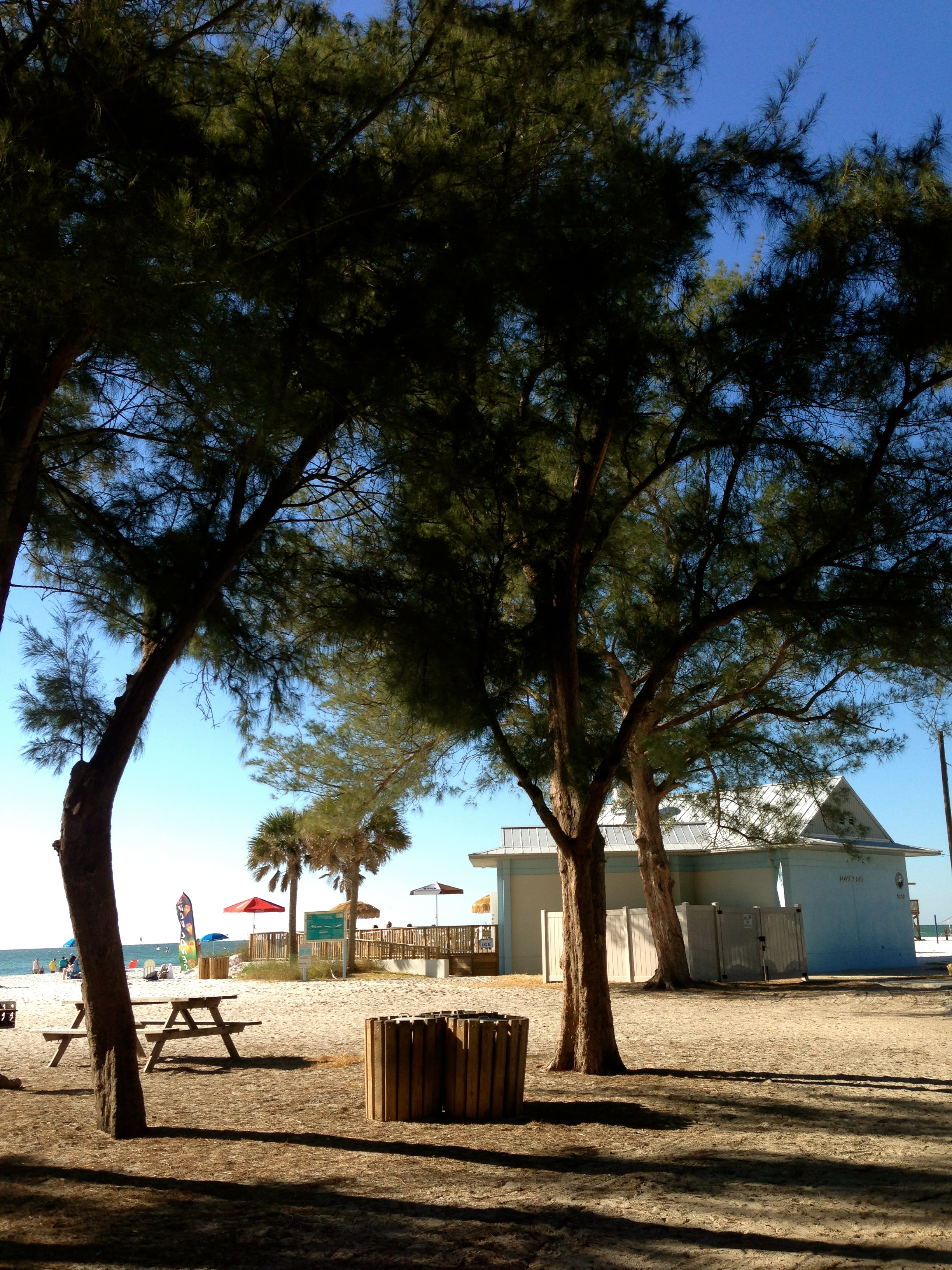 There is a small cafe at the beach. The prices are high for burgers and fries, and the service is slow, but you’re at the beach!